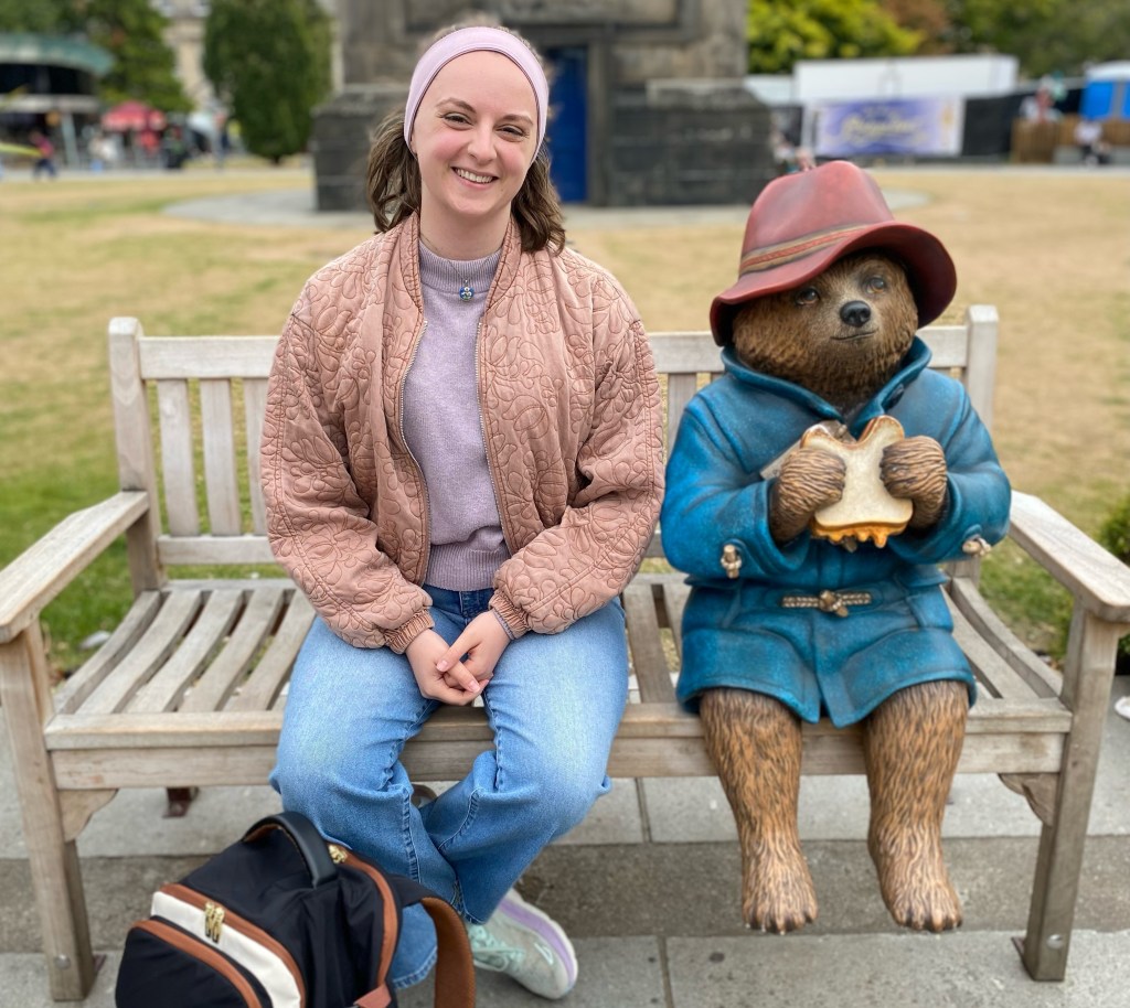 Our daughter Lora had the wonderful opportunity to go to Scotland for a month last year, performing in a play called Faster in the Attic at the Edinburgh Fringe Festival. She and the production got several nice reviews. While she was there she stopped to have a chat with Paddington Bear.