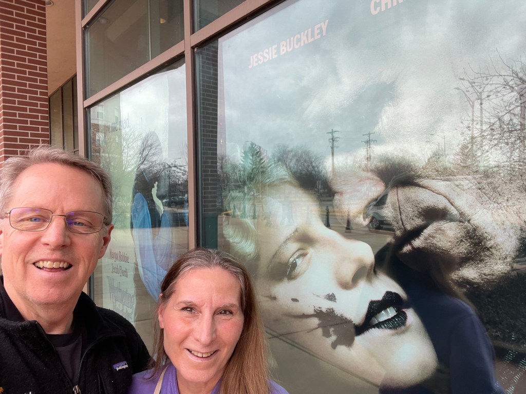 Debbie and I stopped for a selfie beside the movie poster for The Bride! at our local theater. The two monsters are on the right, in case you were wondering.